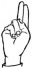 На ћирилици написано ЛАБУДА ВЛАШКОВИЋ састоји се из 15 слова [?]. Исписано ћириличном једноручном азбуком за глувонеме: